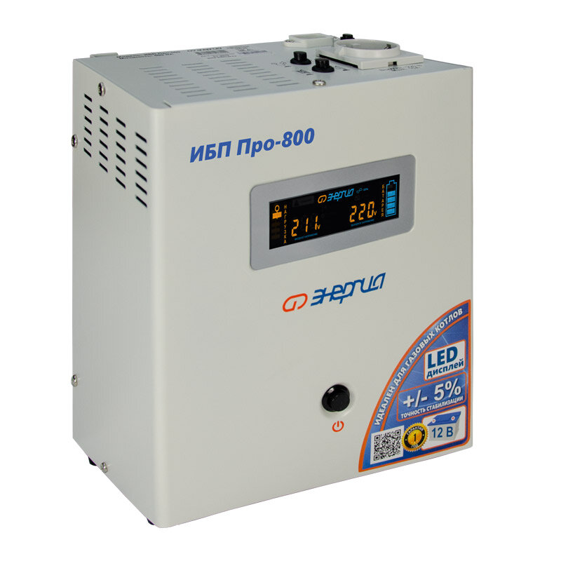 ИБП Энергия Pro 800 12В источник бесперебойного питания для газового отопительного котла, циркуляционного насоса, для дома (800 ВА / 500 Вт) 1 розетка
