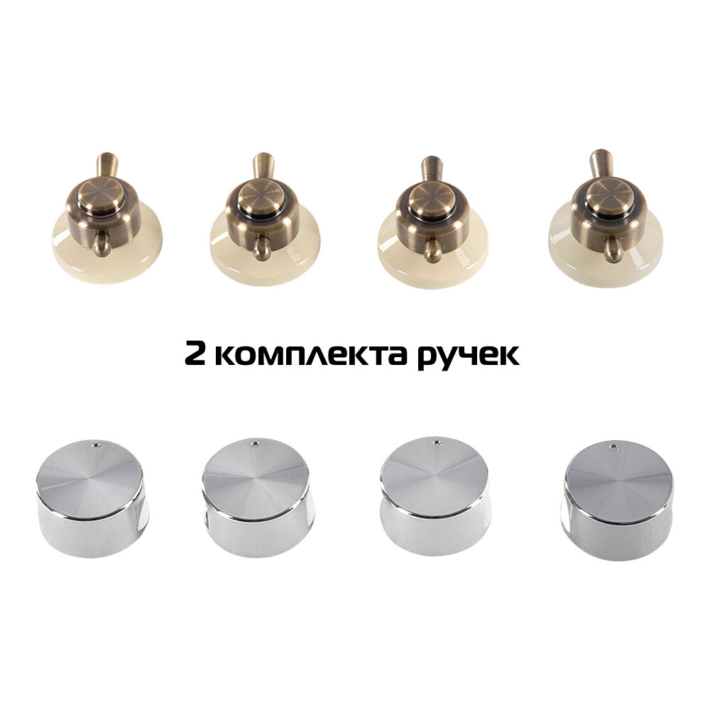 Варочные поверхности Газовая варочная поверхность HIBERG VM 6145 RY, WOK конфорка, электророзжиг, газ-контроль, таймер, бежевый ретро