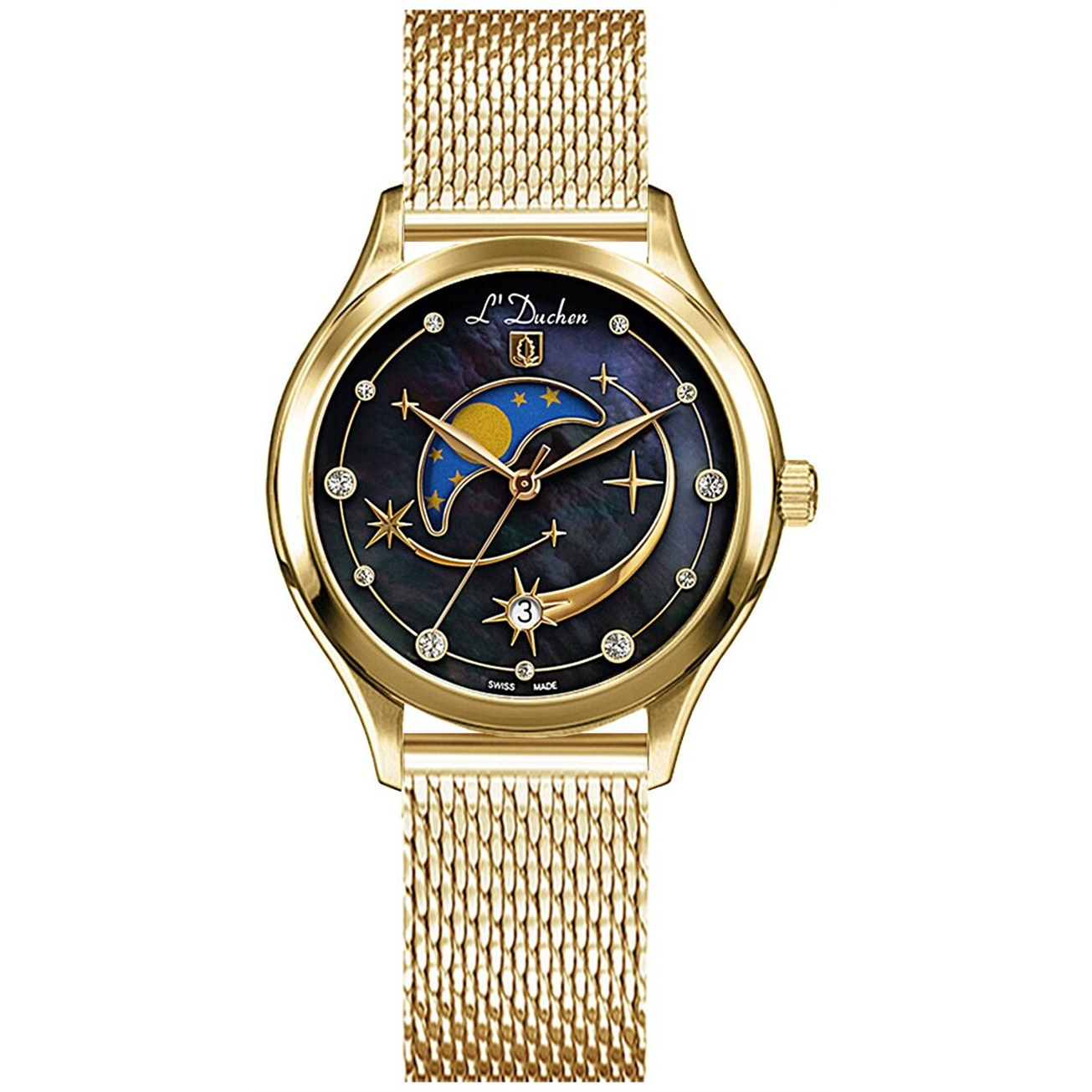 Лучшие цены. Часы L'Duchen Perseides D 837.21.41 M Волшебство кварцевых часов серии Perseides в уникальном циферблате из натурального перламутра, рисунок которого создан самой природой. Этот материал служит фоном хорошо читаемым стрелкам часов, минут и секунд. Накладные элементы в виде падающих звезд символизируют «персеиды» - метеорный поток, давший название коллекции. В один из них органично вписано круглое окошко даты. Украшением модели служит индикатор фаз Луны, выделенный металлической рамкой. Магазины в вашем городе.
