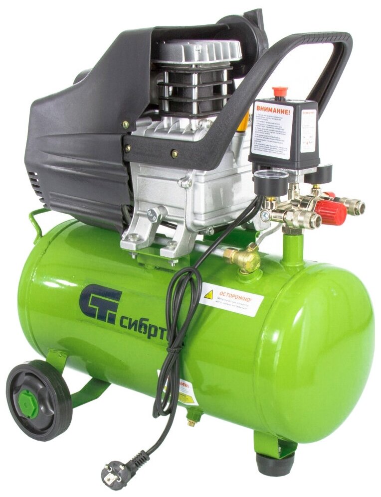 Компрессор Компрессор воздушный КК-1500/24, 1,5 кВт, 198 л/мин, 24 л, прямой привод, масляный// Сибртех 58037 .