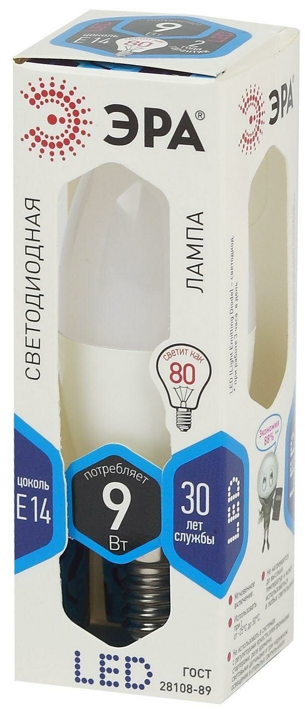 Лампочка светодиодная ЭРА STD LED B35-9W-840-E14 E14 9Вт свеча нейтральный белый свeт арт. Б0027970 (1 шт.)