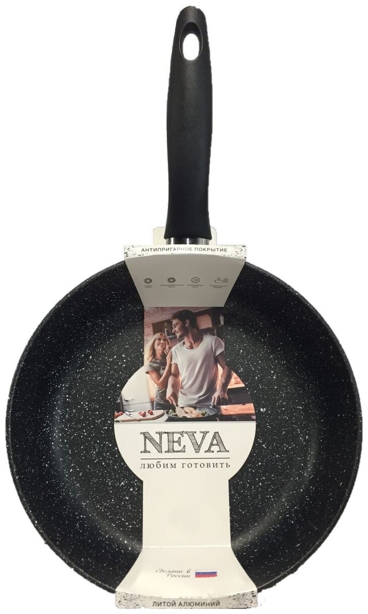 Лучшие цены. Сковорода 24 см серии Neva Granite. Классическая серия сковород NEVA безупречно подходит для ежедневного использования, произведена из материалов высшего класса безопасности на новейшем оборудовании. Высококачественное антипригарное покрытие позволяет готовить без масла или с минимальным его количеством, сохраняя натуральный вкус продуктов. Безопасное антипригарное покрытие изготовлено на водно-кремниевой основе, ресурс сковороды более 2500 условных циклов приготовления, антипригарные свойства не теряются. Магазины в вашем городе.