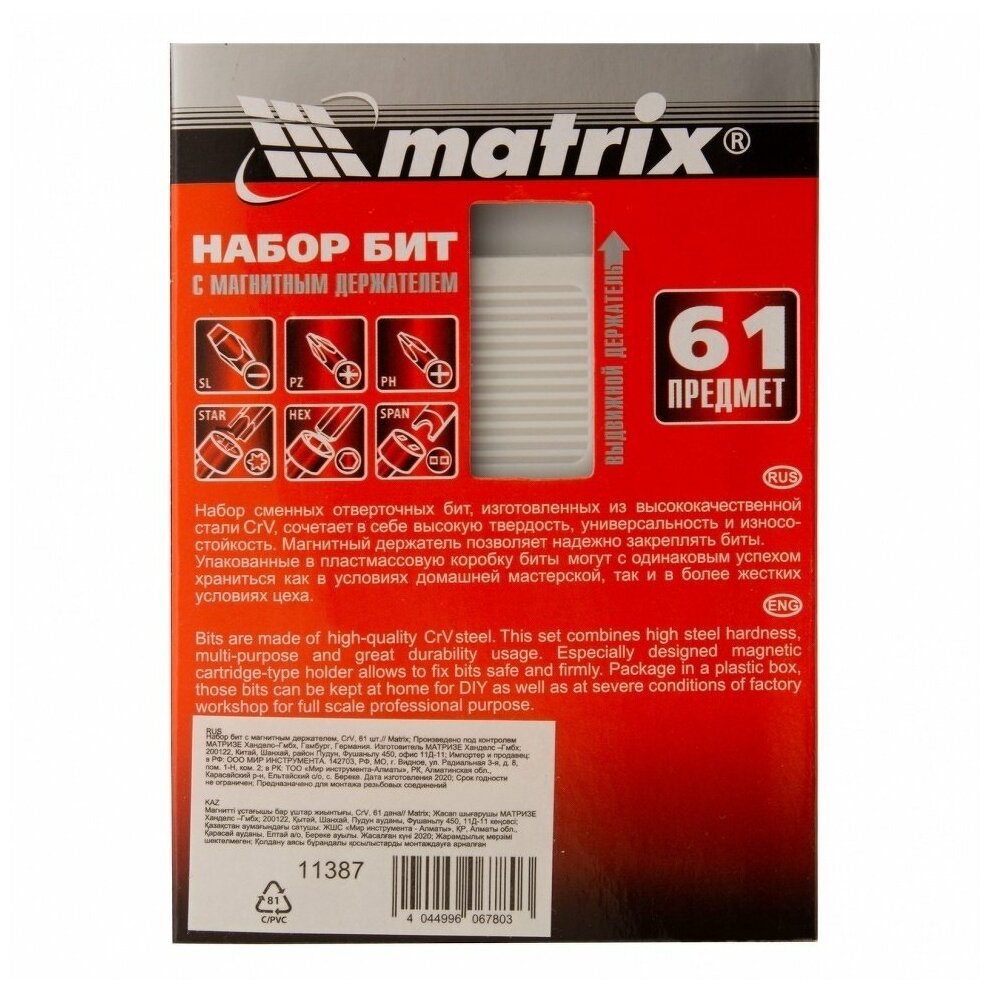 Набор бит Matrix 11387, с магнитным держателем, CrV,61шт