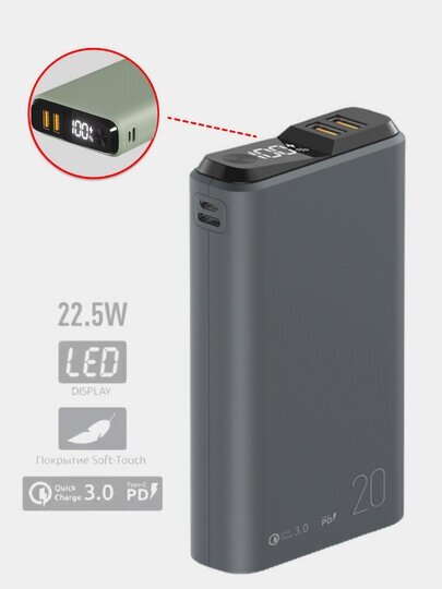 Портативное зарядное устройство Olmio QS-20 20000mAh, 22,5W, QC 3.0, темно-сер 3 097 ₽ Подробнее