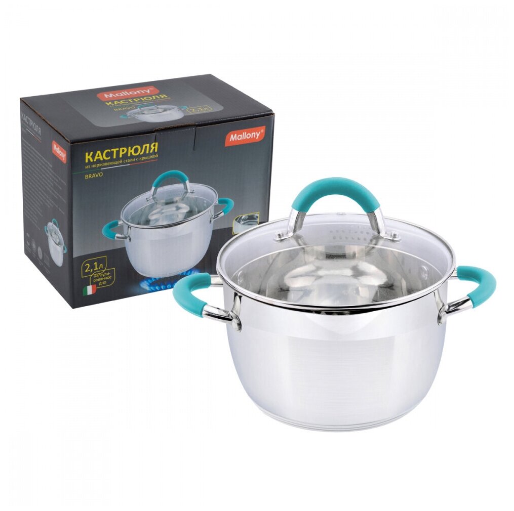 Кастрюля Mallony Bravo 2,1 л, стеклянная крышка, нержавеющая сталь