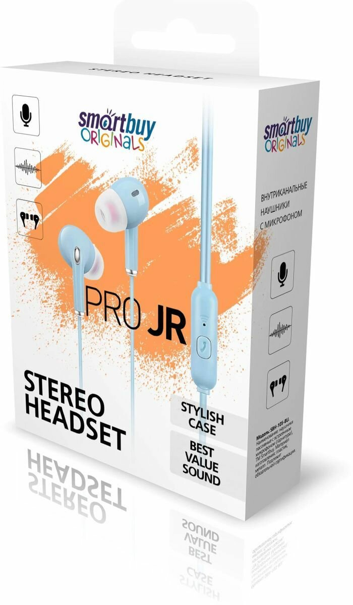 Наушники Внутриканальная гарнитура Smartbuy Pro JR, голубая
