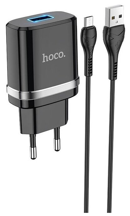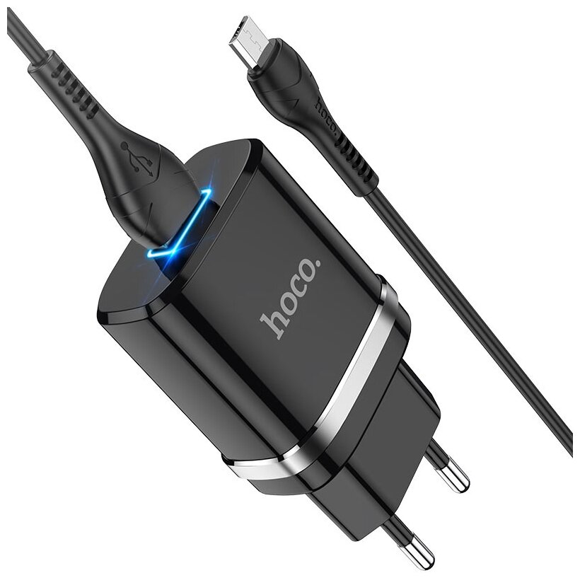 Зарядки для гаджетов СЗУ Hoco N1 Ardent, один порт USB 2.4A, с кабелем MicroUSB, черный