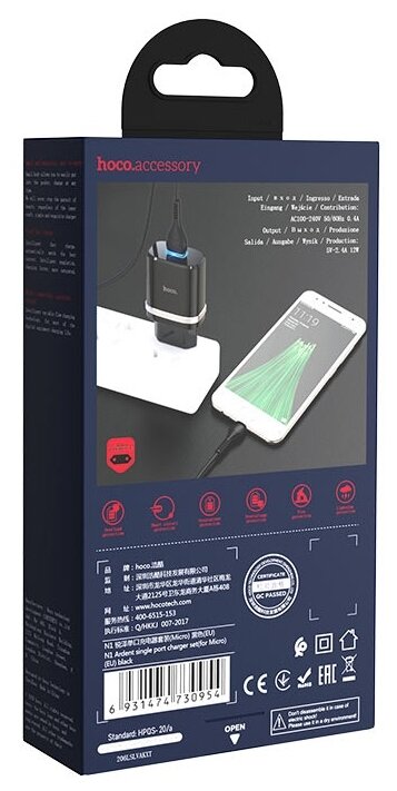 HOCO N1 Ardent single port charger set(for Micro)(EU) black 420 ₽ Подробнее