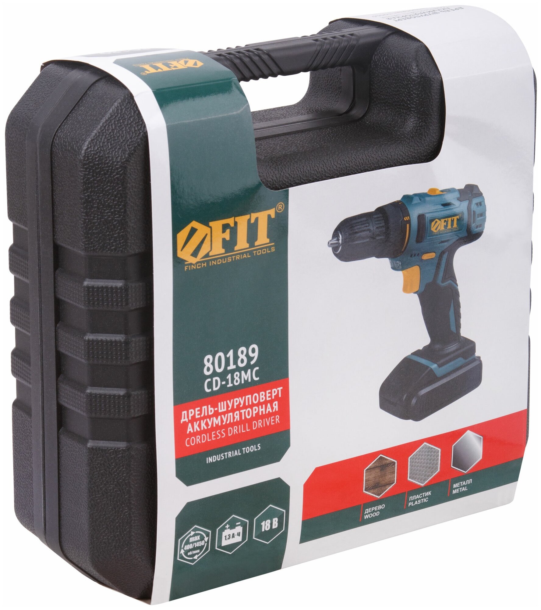 Дрель-Шуруповерт акк. 18,0 В; 0-400/1450 об/мин; 29,0 Нм; 2 (Li-Ion) 1,3 Ач; 1,5 ч.; рез. накл.; кейс, FIT 80189 (1 шт.)