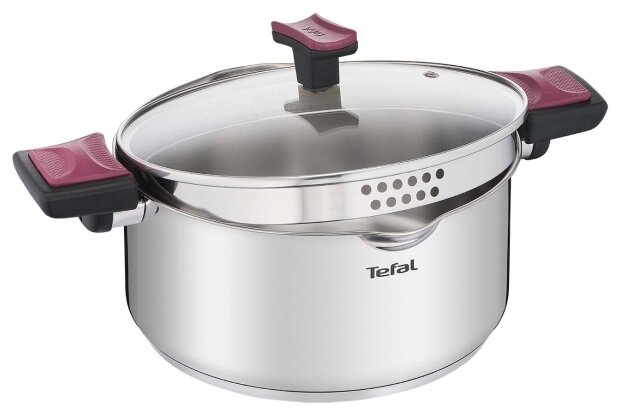 Лучшие цены. Кастрюля Tefal Cook&Clip подойдёт для варки любых продуктов, но особенно будет удобна для тех, что требуют слива воды: пасты, картофеля, риса, овощей и т. п. Процесс упрощает специальный носик и крышка, снабжённая особой системой креплений. Один щелчок прочно её фиксирует. Больше никакой возни с дуршлагом и прихватками! качественные материалы В этой утвари можно готовить на любых конфорках, включая индукционные. Посуда сделана из полированной нержавеющей стали 18/10, в состав которой входят хром и никель. Магазины в вашем городе.