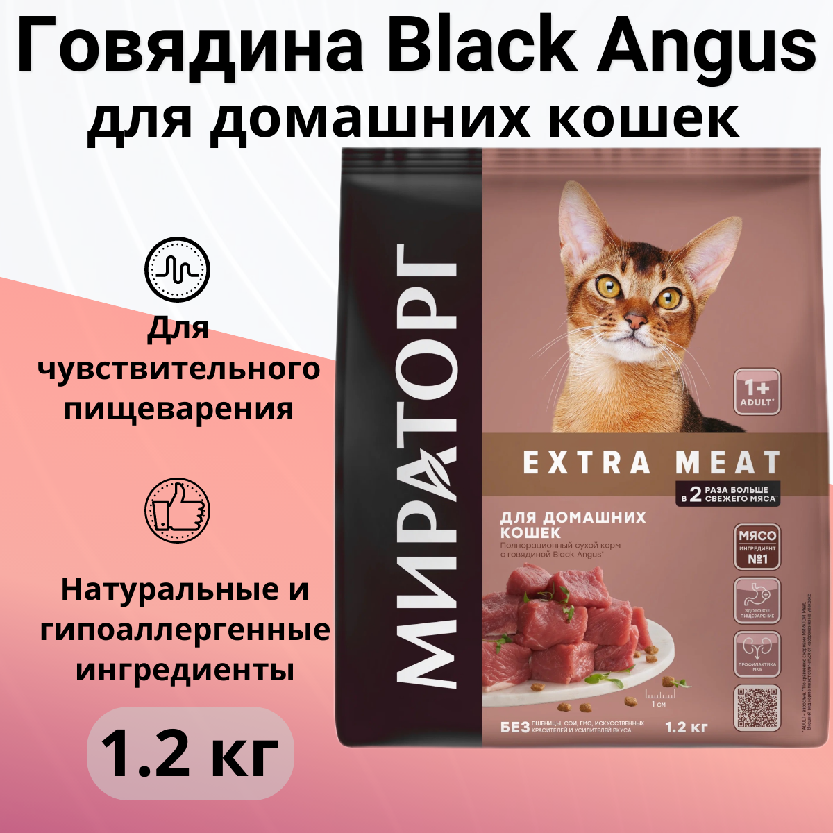 Полнорационный сухой корм Мираторг Extra Meat с говядиной Black Angus для домашних кошек старше 1 года 1,2 кг