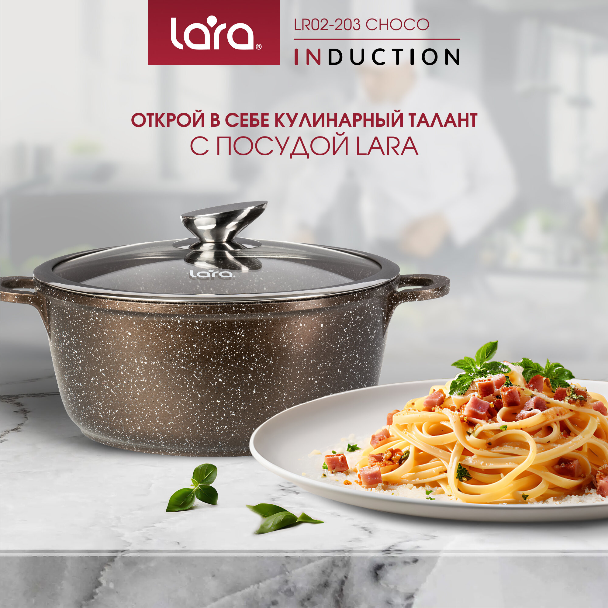Кастрюля с крышкой LARA LR02-206 CHOCO мрамор, d28 см, 6.1л, для всех типов плит