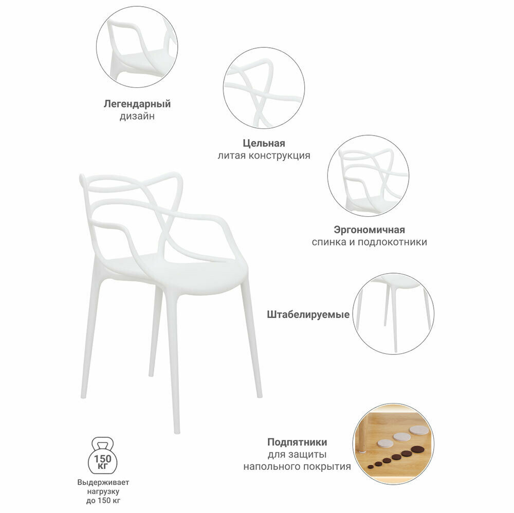 Стул для кухни пластиковый со спинкой и подлокотниками Masters белый