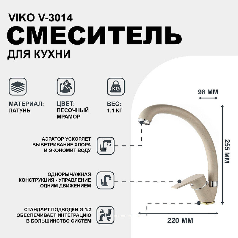 Смесители Смеситель для кухни Viko V-3014 Песочный мрамор