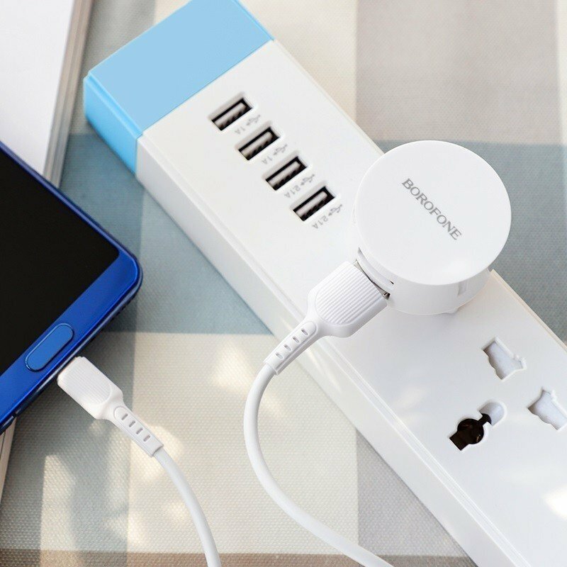 Borofone Сетевое зарядное устройство Borofone BA23A, 2xUSB, 2.4 А, кабель Type-C, 1 м, белое