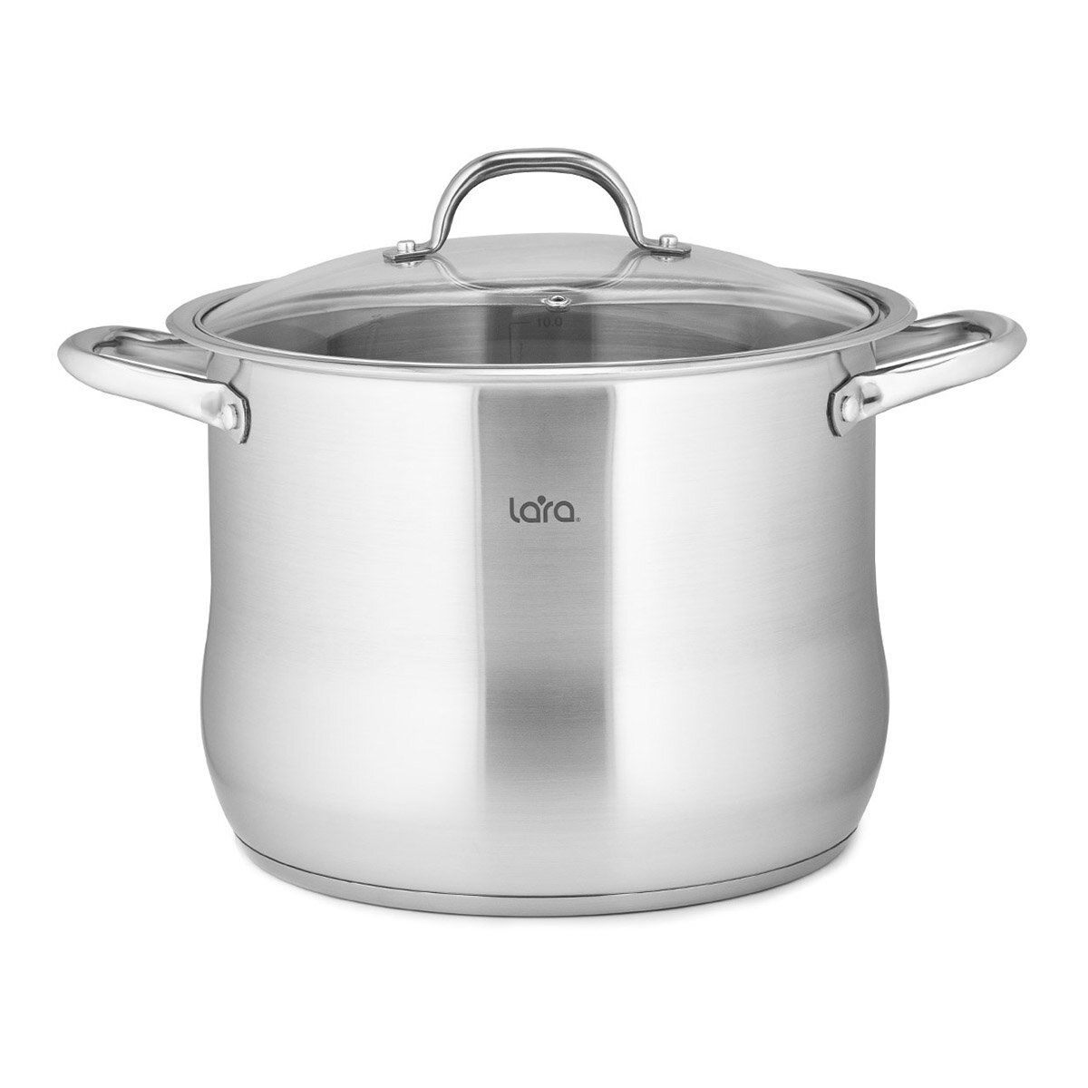 LR02-43 Кастрюля LARA (нерж) 26x21см, 10.6л, капсулир индукц дно, стекл крышка