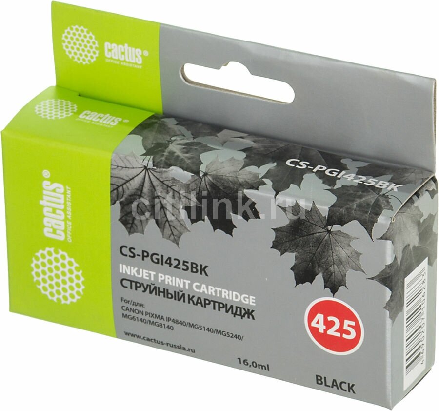 Картридж струйный Cactus CS-PGI425BK PGI-425BK черный пигментный (16мл) для Canon Pixma iP4840/MG5140/5240/6140/8140/MX884