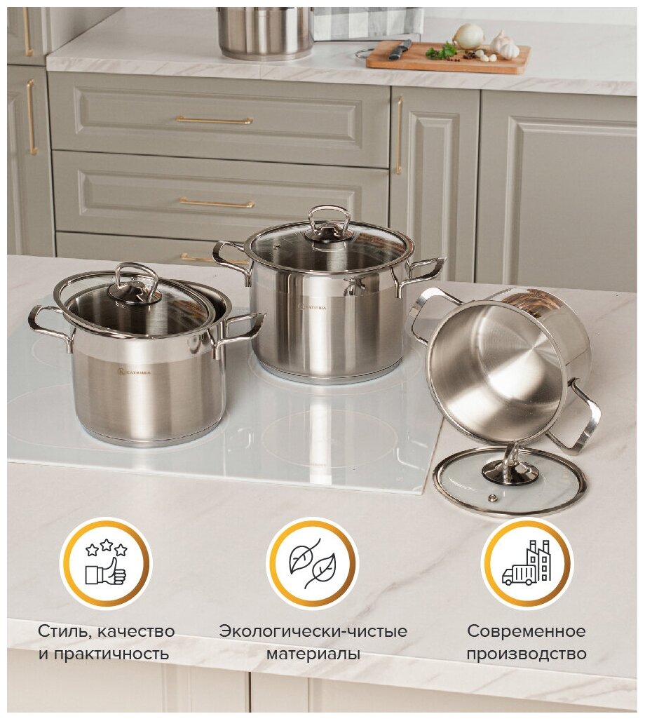 Набор посуды Катюша София, 6 предметов, нержавеющая сталь ( кастрюли 1,8/3,2/4,5 л, крышки)