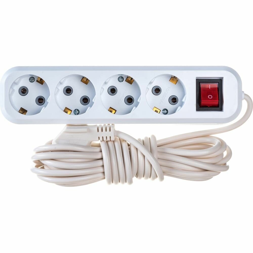 Удлинитель четырехместный с/з с выключателем HM03-41-05 3x0,75, 5м, серия Home (У10А-003), белый, STEKKER 39525 (1 шт.)