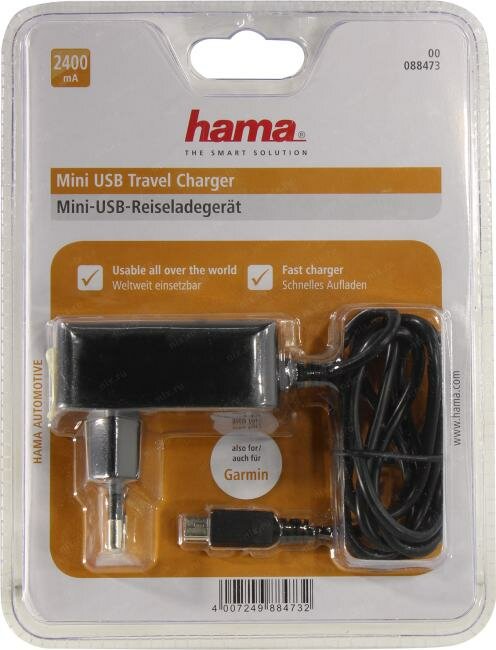 Зарядки для гаджетов Зарядное устройство Hama H-88473 для навигаторов mini-USB 5В/2А