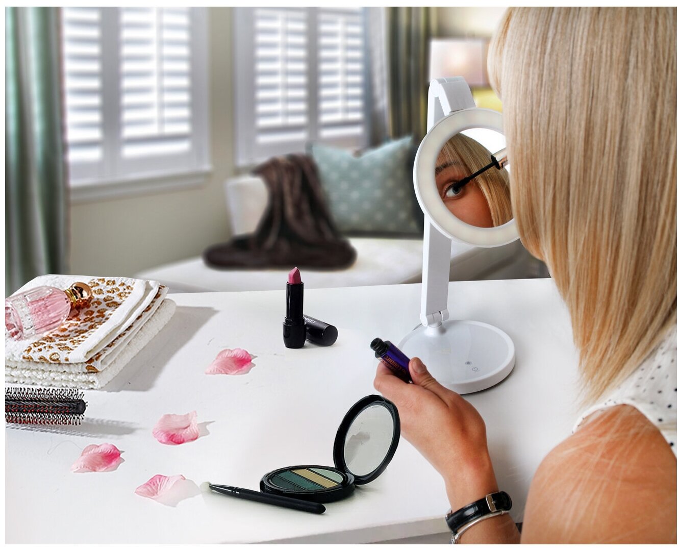 Настольная лампа Настольный LED белый светильник с зеркалом 9Вт (для удобства нанесения макияжа) рег. ярк. и цвет. темп. 2700-6500К - KD-824 С01(Camelion)(код 13524)