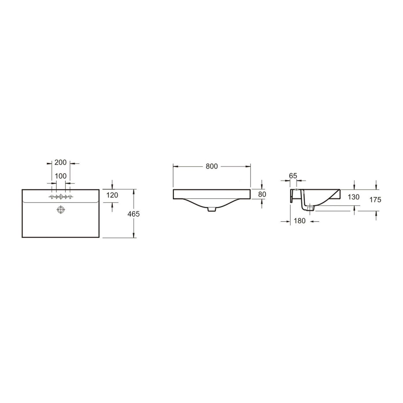 Умывальники Врезная раковина в ванную Lavinia Boho Bathroom Sink 33311013: умывальник из фарфора 80 см, прямоугольный, цвет глянцевый белый