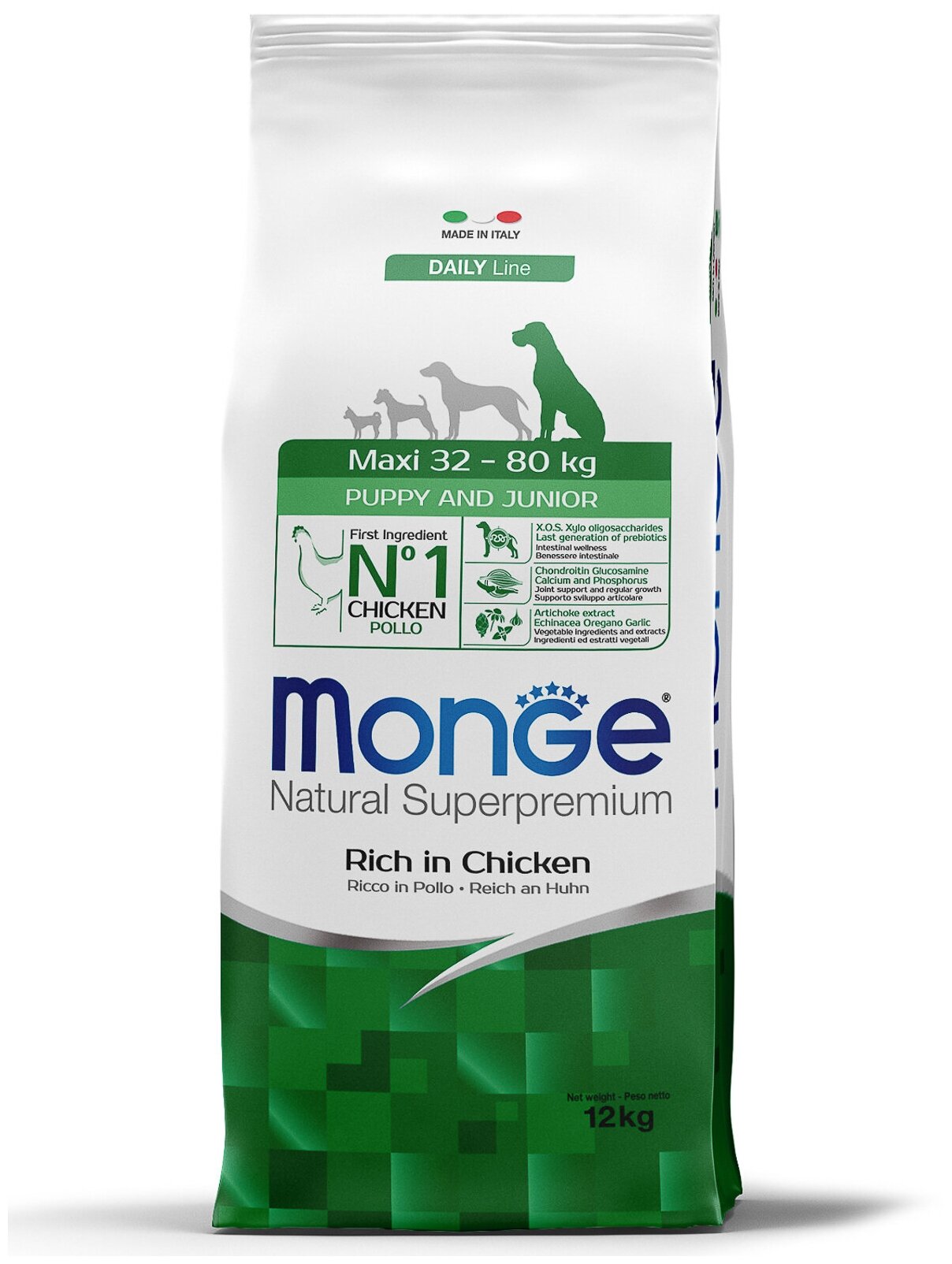 Сухой корм для щенков крупных пород Monge Daily Line Puppy and Junior Maxi с курицей 12 кг (Вес упаковки, кг: 12)