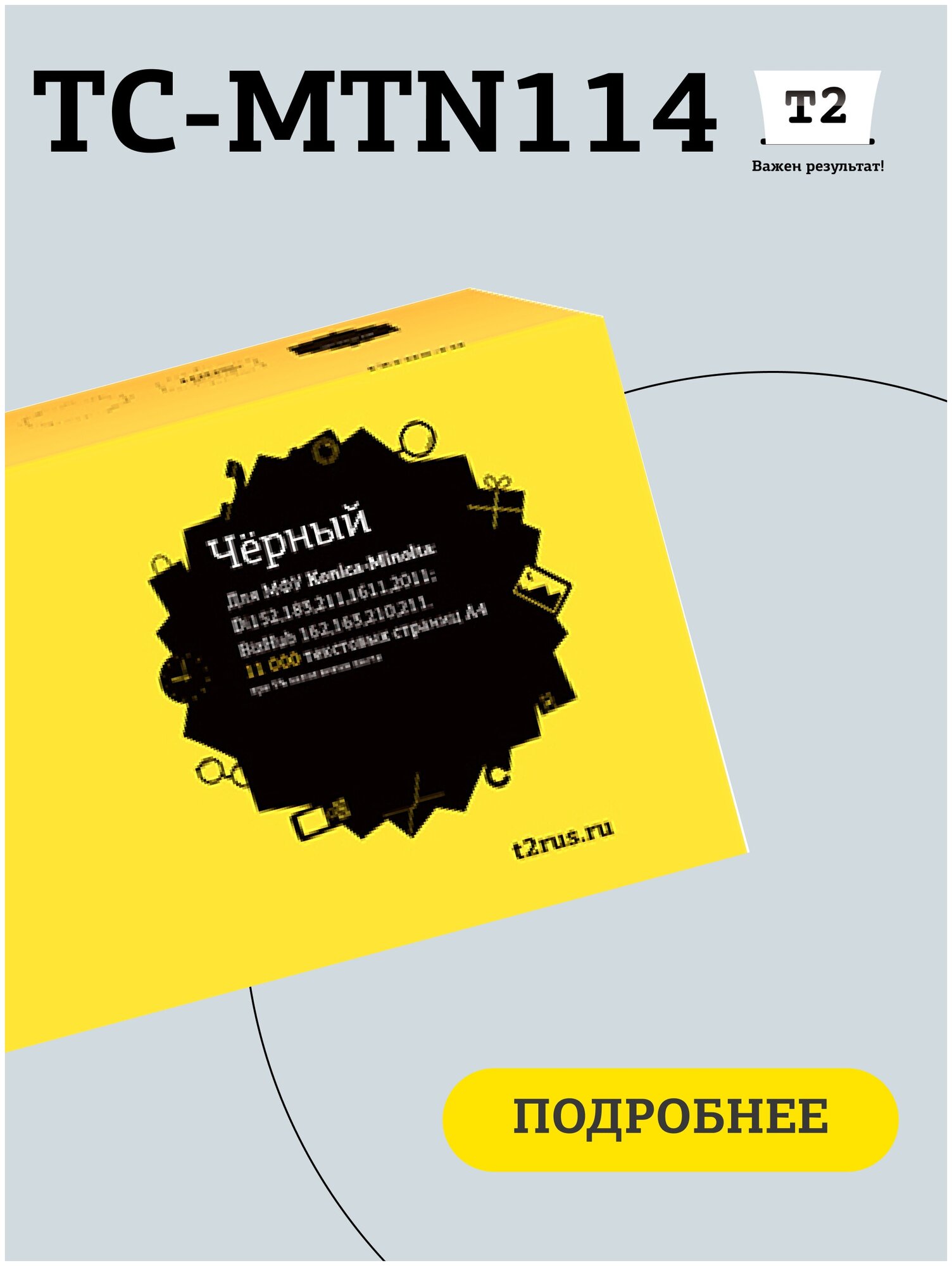 Лучшие цены. Лазерный картридж T2 TC-MTN114 для принтеров Konica-Minolta, черный (black). Подходит для принтеров: Konica-Minolta Di152, Di183, Di211, Di1611, Di2011; Konica-Minolta BizHub 162, 163, 210, 211. Магазины в вашем городе.
