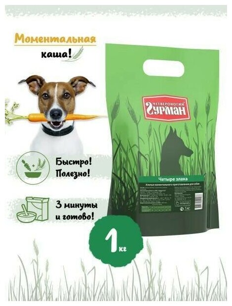 Корм для собак Четвероногий гурман каша 4 злака (зеленый пакет) 1кг