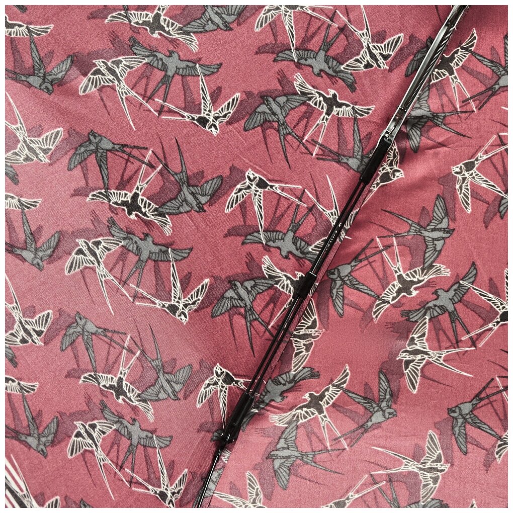 Лучшие цены. Яркий, нарядный, интересного дизайна зонт Henry Backer Q2103. Основной цвет купола – элегантно сдержанный ;красный – ;приятно уравновешен черными ;и серыми ;силуэтами ;ласточек. Кайма в виде ленты с логотипом компании контрастирует с хаосом ;их ;полета и ;вносит ;ноту гармонии и предсказуемости. Атласный блеск купола привлекает и создает настроение праздника. ;У модели комфортная, ;нескользящая ;даже в мокрой руке ;рукоять и ;чехол с двумя разрезами, что особенно ;удобно при ;надевании его ;на мокрый зонт. Магазины в вашем городе.