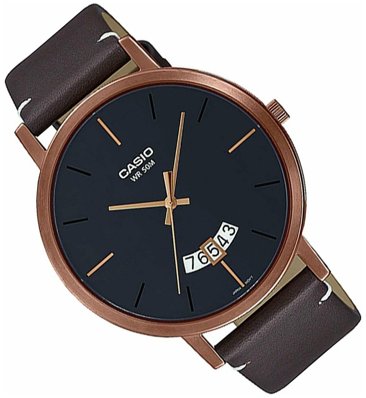 MTP-B100L-2E Casio наручные часы кварцевые WR50 (5 атм) мужские хром, коричневый отображение числа минеральное стекло