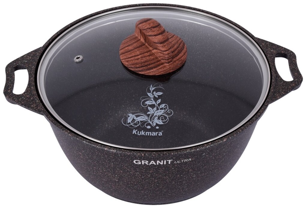 Кастрюля KUKMARA Granit ultra original литая 4,0 л со стеклянной крышкой