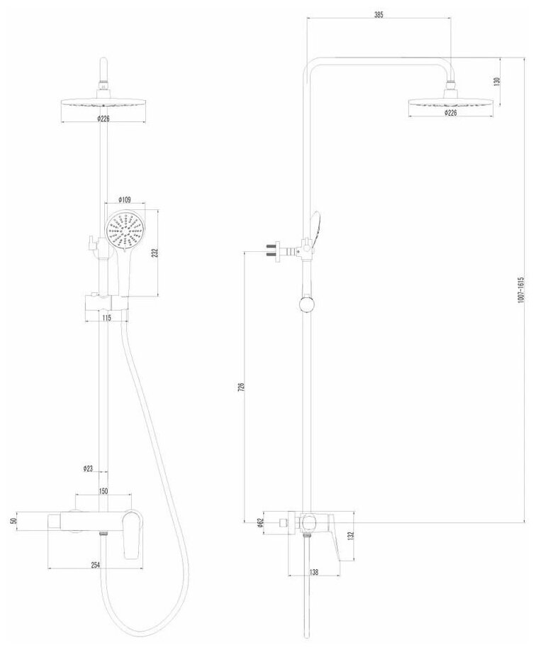 | Размеры панели / стойки | 1007-1615x385 мм |