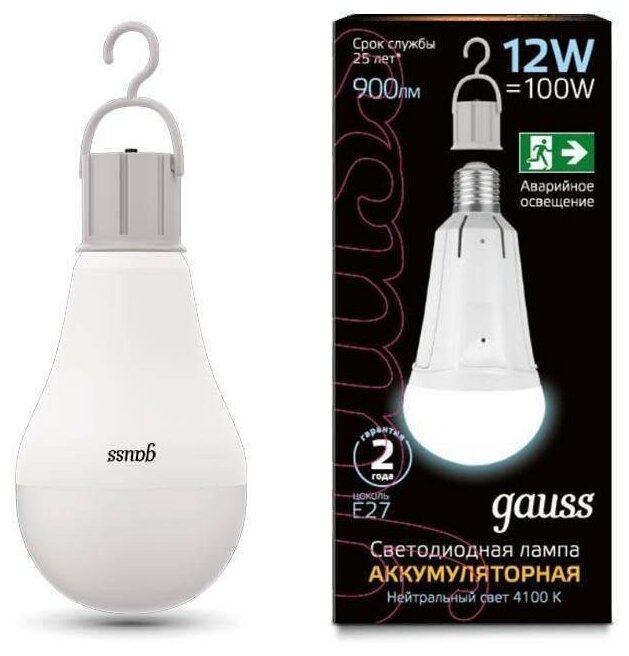 Лампочки Лампочка светодиодная E27 с Li-Ion аккумулятором Груша 12W нейтр-белый свет 4100K Gauss