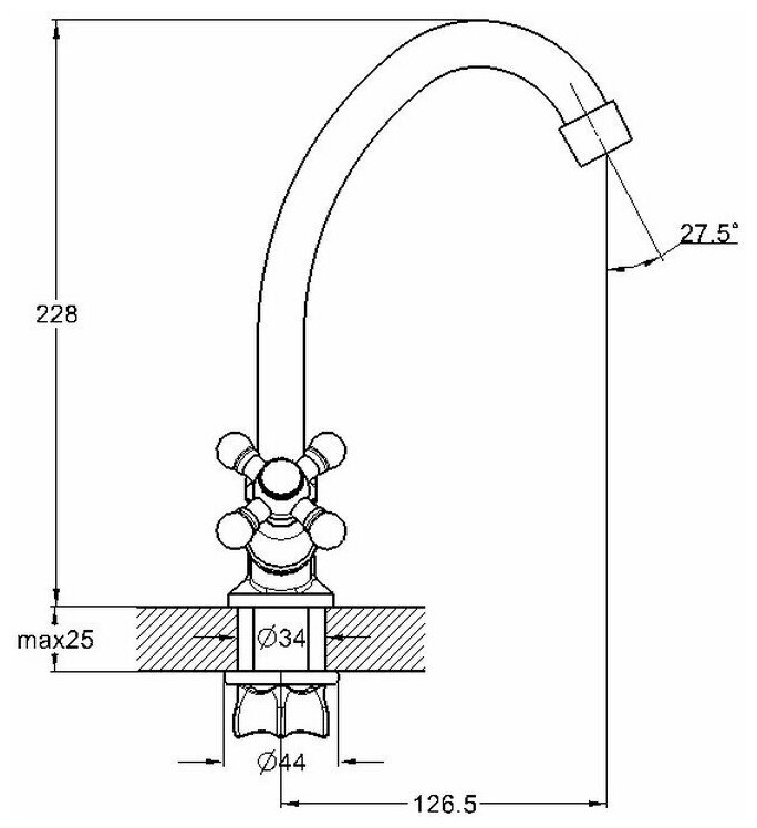Смеситель DMX4-A605 (TZA-A605), двурукий смеситель для кухни на гайке эконом