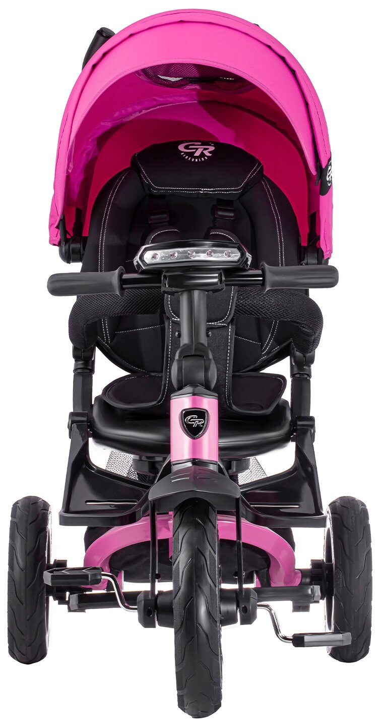 Велосипел детский трехколесный ТМ "CITY-RIDE LUNAR". Пятиугольная рама, складная крыша D600, фара свет/звук, подножки, надувные колеса 12"/10", ножной тормоз, поворот сиденья на 360гр. Цвет розовый
