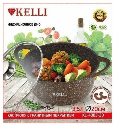 Лучшие цены. Кастрюля Kelli KL-4083-20 диаметром 20 см, объемом 3,5 литров - изготовлена из высококачественного алюминия по технологии Eco Friendly, экологически чистого, долговечного материала, который чрезвычайно устойчив к коррозии и надолго сохраняет свои функциональные свойства. Антипригарное гранитное покрытие. Многослойное дно. Ручки с силиконовыми накладками. Жаропрочная стеклянная крышка с паровыпуском. Подходит для всех видов плит. Подходит для мытья в посудомоечной машине. Магазины в вашем городе.