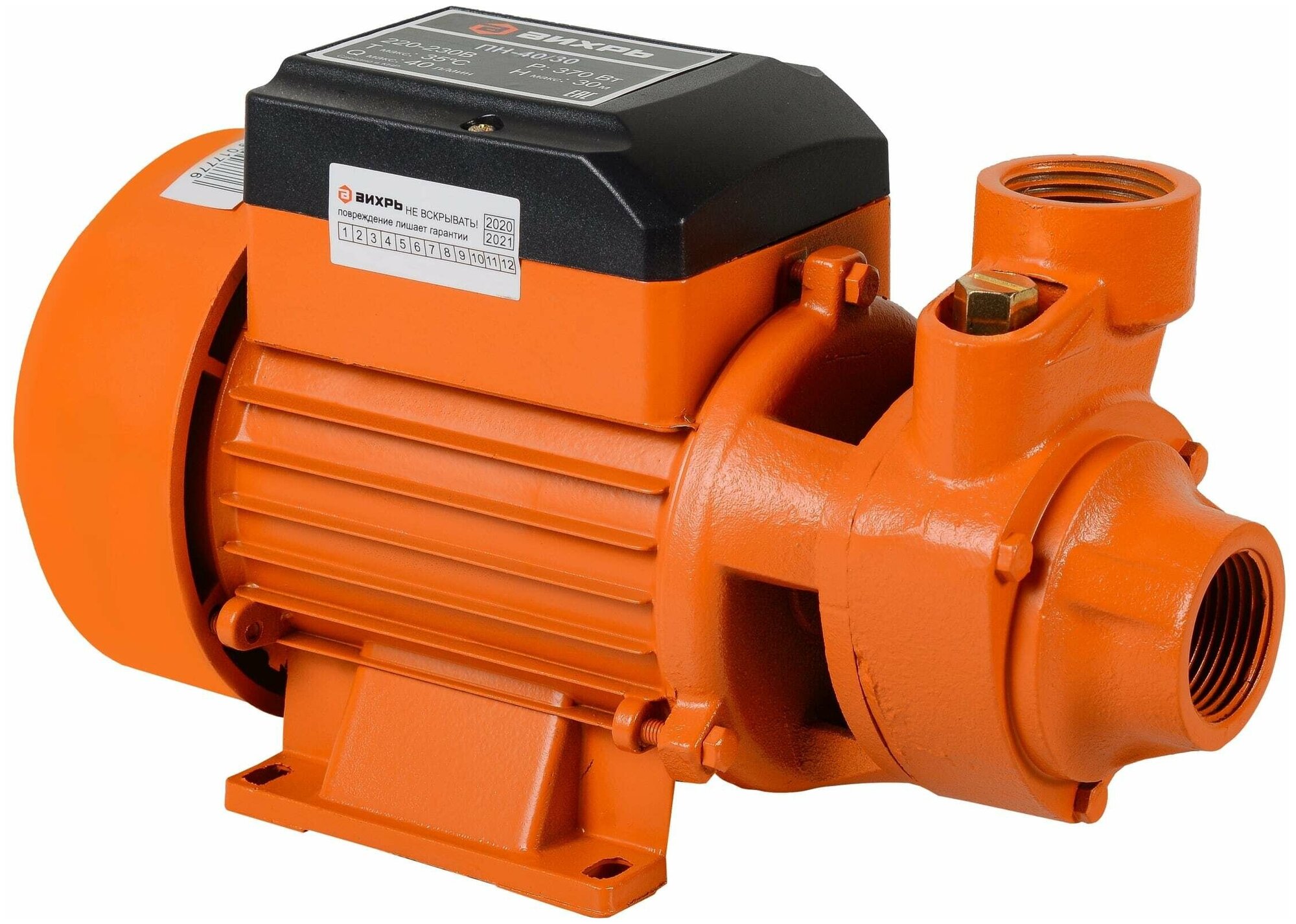 Лучшие цены. Поверхностный насос Вихрь ПН-40/30 68/4/11 предназначен для подачи под давлением чистой воды в дом, для орошения сада и огорода. Вода не должна содержать абразивных или волокнистых, а также химических составных частей, которые могли бы повредить материал деталей насоса. Эффективная работа. Мощный двигатель может перегонять воду с глубины до 9 метров. Насос имеет плоское основание с отверстиями для устойчивого положения при работе. Магазины в вашем городе.