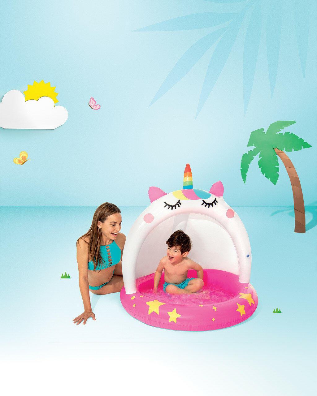 Надувные бассейны INTEX Детский бассейн с навесом Единорожка 102*102 см, надувное дно 58438