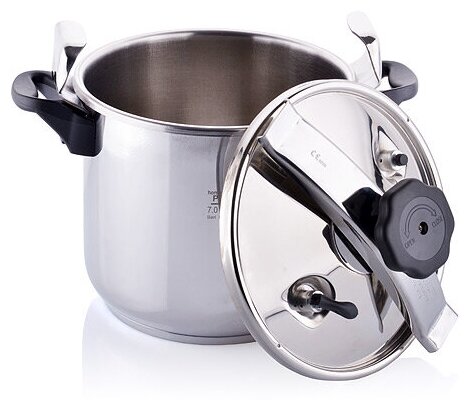 Лучшие цены. 80156 Скороварка нерж 7л Турция MB (х4)(х2) Скороварка выполнена из высококачественной нержавеющей стали и оснащена толстым капсульным дном, обеспечивающим равно мерный нагрев и длительное сохранение тепла. Скороварка является незаменимым помощником в приготовлении первых и вторых блюд. Приготовление пищи в скороварке имеет массу преимуществ по сравнению с обычными способами варки в кастрюле. Время приготовления значительно сокращается, так как процесс происходит при повышенном давлении. Магазины в вашем городе.