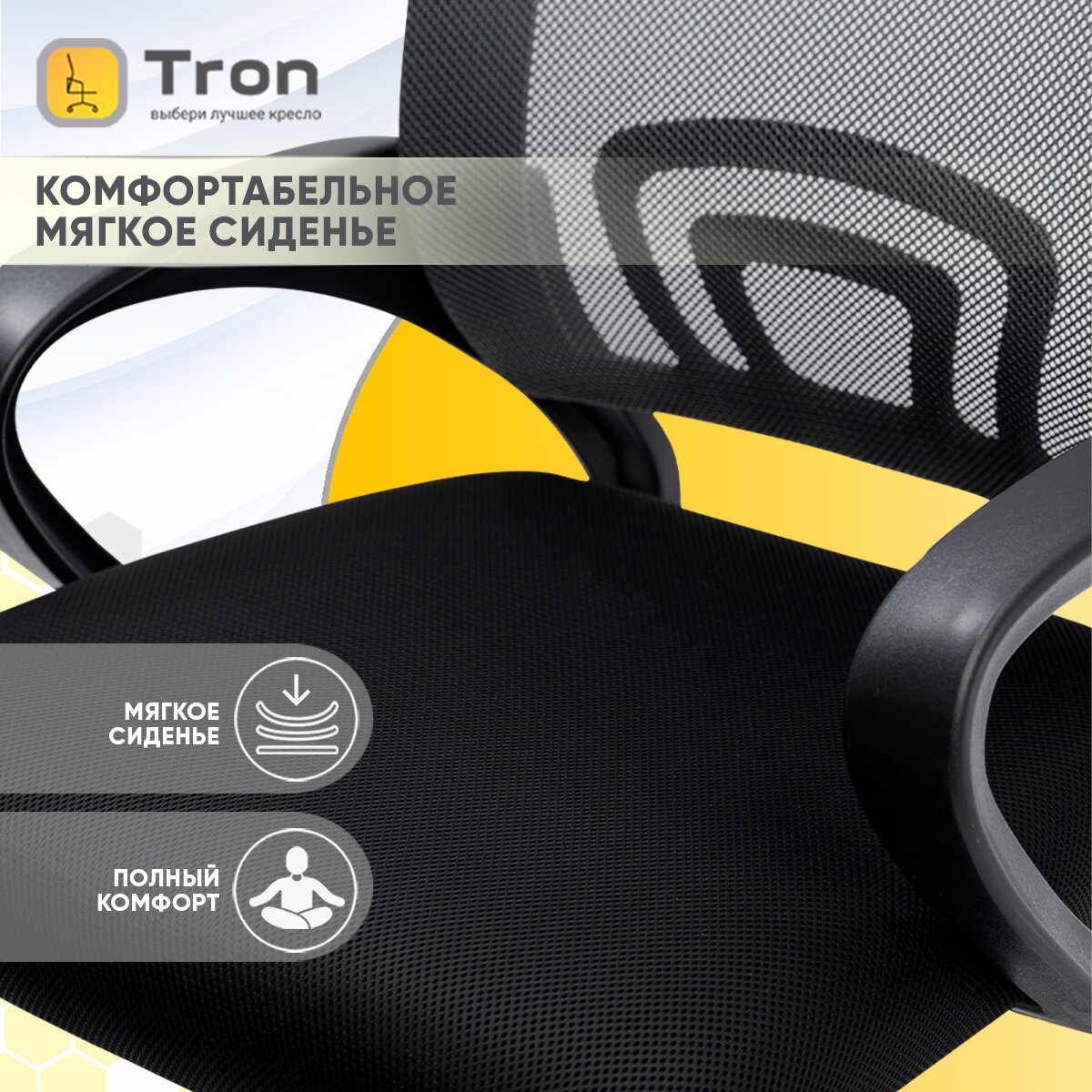 Кресло компьютерное, офисное Tron A1-695 Standard, сетка, цвет: черный