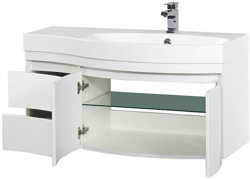 Лучшие цены. Подвесная тумба под раковину Aquanet Опера 115 R 00169654 с выдвижными ящиками и распашными дверцами. Неординарный дизайн играет линиями плавных изгибов обтекаемых несимметричных форм. Вместительная тумба обеспечит комфортное размещение и хранение принадлежностей. Предназначена для использования в ванных комнатах с повышенной влажностью. Соответствует стандартам безопасности. Магазины в вашем городе.