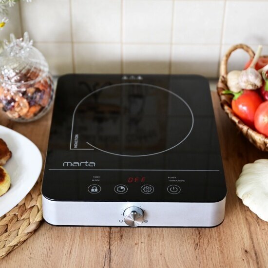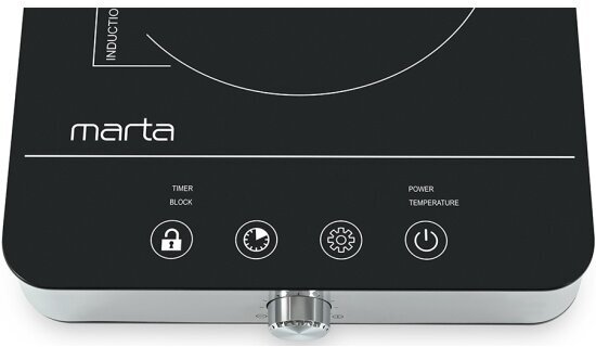 Электрическая плита MARTA MT-4211 Индукционная Черный жемчуг 1-комфорочн, 2000W 10 режимов мощности таймер
