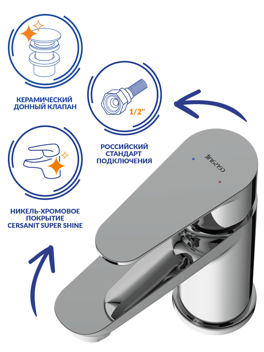 Смесители Смеситель для раковины Cersanit Cersania A63030, сливной гарнитур Cersanit 9095160 .