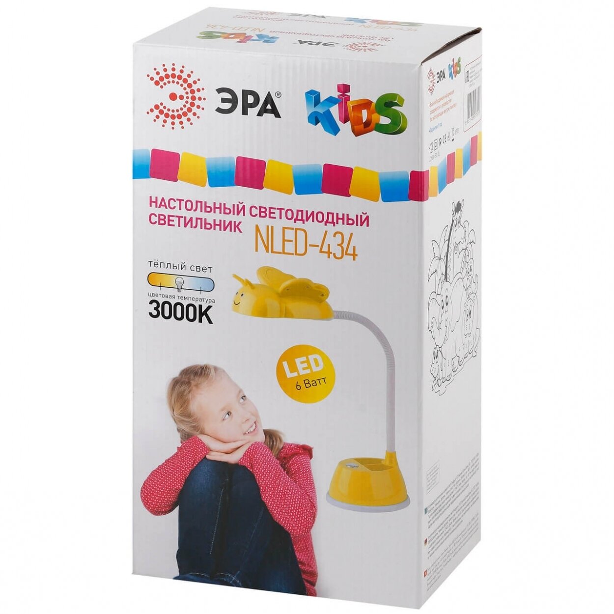 Лампа настольная светодиодная детская для школьника ЭРА NLED-434-6W-Y Пчелка с подставкой для ручек
