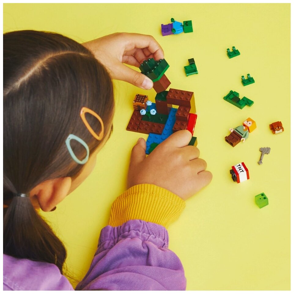 Лучшие цены. Количество элементов (шт.) -65 Подарите игрокам Minecraft в возрасте от 7 лет болото, полное практической, насыщенной действиями, творческой игры с LEGO «Болотное приключение» (21240). Практический игровой набор Minecraft — LEGO Minecraft The Swamp Adventure (21240) воссоздает мангровое болото из игры, полное возможностей для творческого строительства и захватывающих сражений. Магазины в вашем городе.