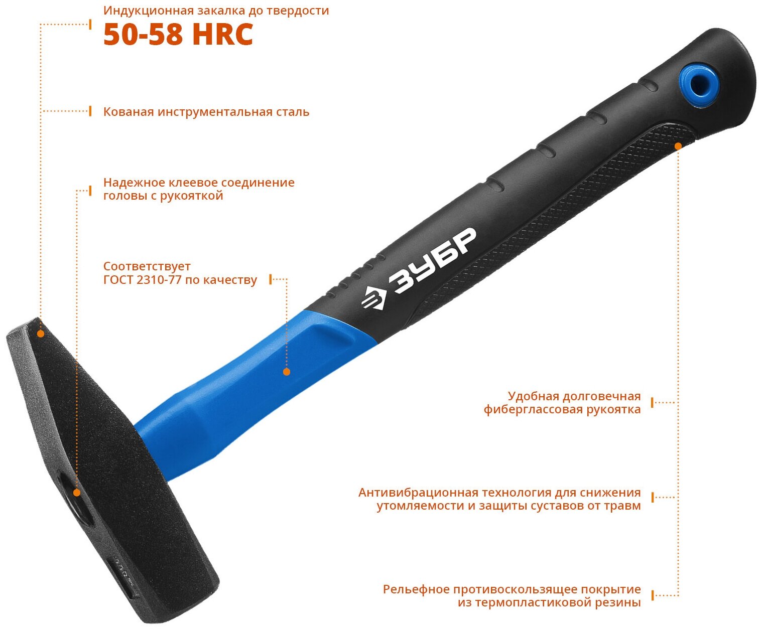 ЗУБР Фибергласс 600 г молоток слесарный с фиберглассовой рукояткой