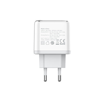 Лучшие цены. Производитель: Ldnio Модель: A2528C Тип: сетевая зарядка + кабель USB-С - USB-C 1м Вход: 100–240 В, 50–60 Гц, 0,8 А макс. Выход PD 1: 5V3A, 9V3A, 12V2.9A, 15V2.33A, 20V1.75A (35 Вт) Выход PD 2: 5V3A, 9V3A, 12V2.9A, 15V2.33A, 20V1.75A (35 Вт) Выход PD1+Выход PD2: 17,5 Вт+17,5 Вт Общая мощность: 35W макс. Вилка: EU Цвет Белый Умный чип Огнеупорный пластик Множественная защита для безопасного использования Защита от перегрузки, перегрева, короткого замыкания, перезарядки и др. Магазины в вашем городе.