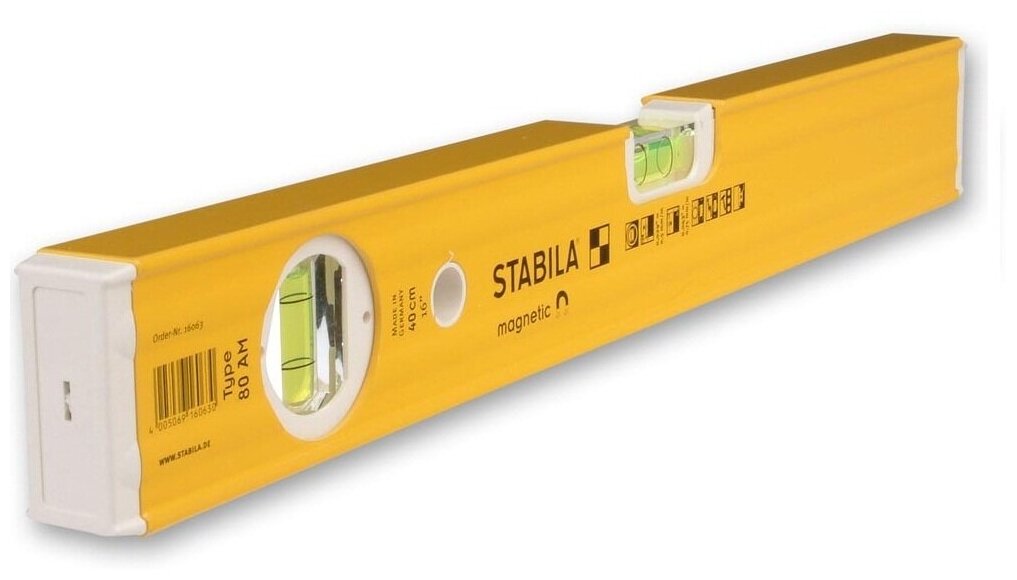 Лучшие цены. - Данная магнитная система в 5 раз мощнее обычной ферритовой магнитной системы; - Инструменту подходит метод измерения над головой; - Ребристый профиль - надежный захват магнитного уровня STABILA тип 80АM, 100 см 16066; - Одна высокоточная измерительная поверхность; - Две прочные ампулы: горизонтальная и вертикальная; - Точность измерения: в обычном положении 0.029°=0.5 мм/м, измерение над головой 0,043°=0.75 мм/м; - Отверстие для подвеса; - Профиль из легкого металла не поддается деформации. Магазины в вашем городе.