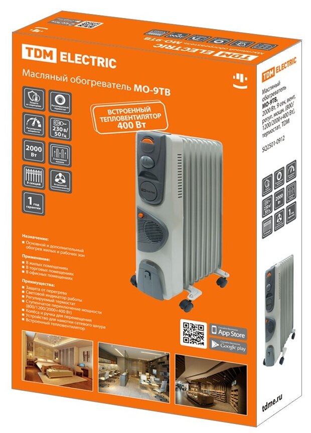 TDM SQ2501-0912 Масляный обогреватель Мо-9тв, 2000 Вт, 9 сек, вент, регул. мощн. (800/1200/2000+400